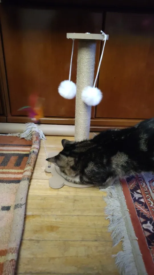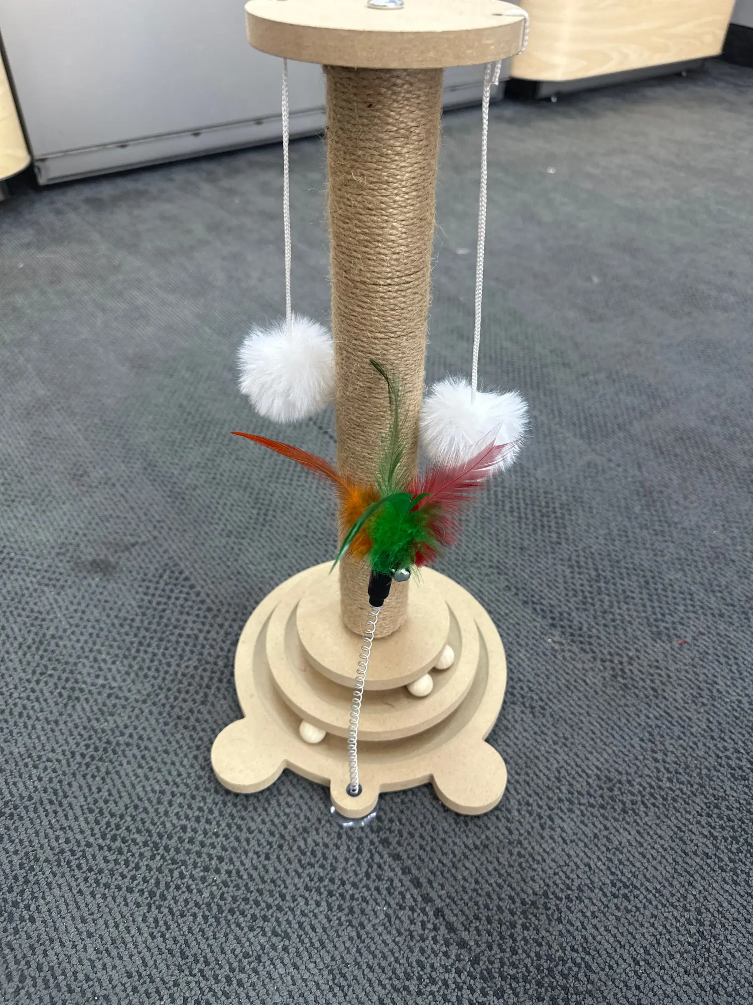 Keep your cat entertained and healthy with our Wooden Cat Scratching Post & Play Station.